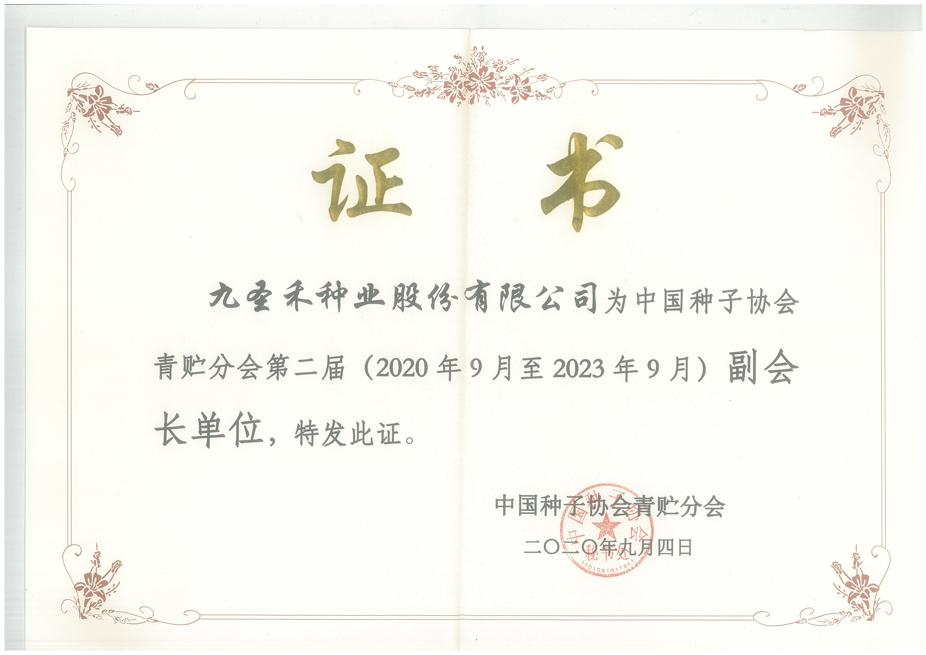 中国种子协会青贮分会第二届副会长单位(2020.9-2023.9)