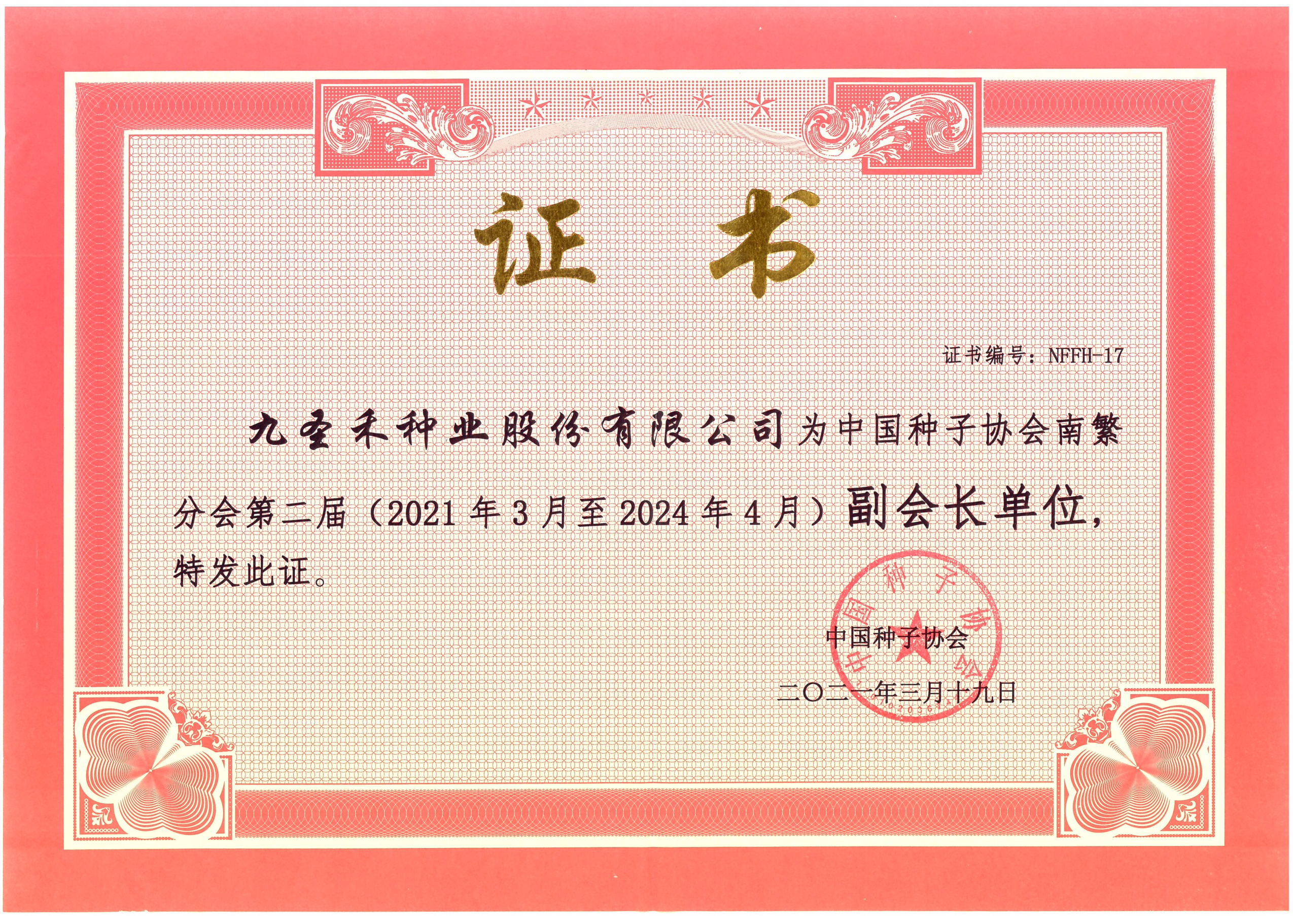 中国种子协会南繁分会第二届副会长单位(2021.3-2024-4)