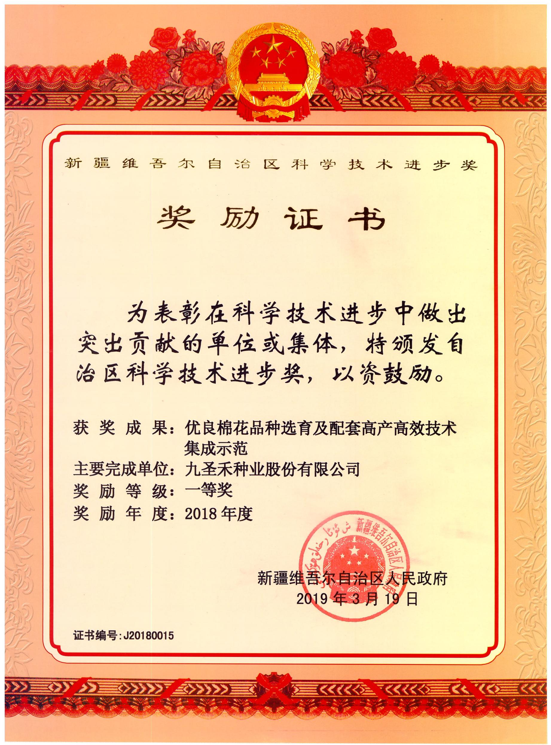 2018年自治区科学技术进步奖(一等奖)